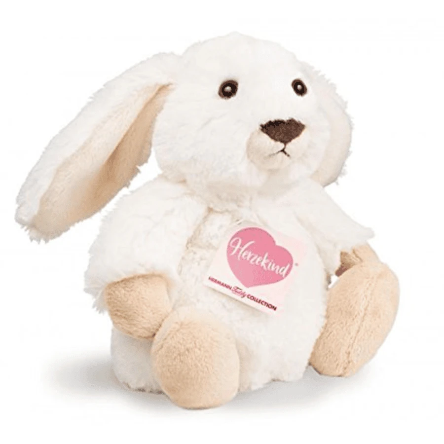 Poppi le lapin flaire une piste : il recherche un champ de carottes ! Poppi est en peluche de haute qualité au rembourrage en ouate de polyester. Une peluche de lapin de la collection Herzekind de Hermann Teddy.