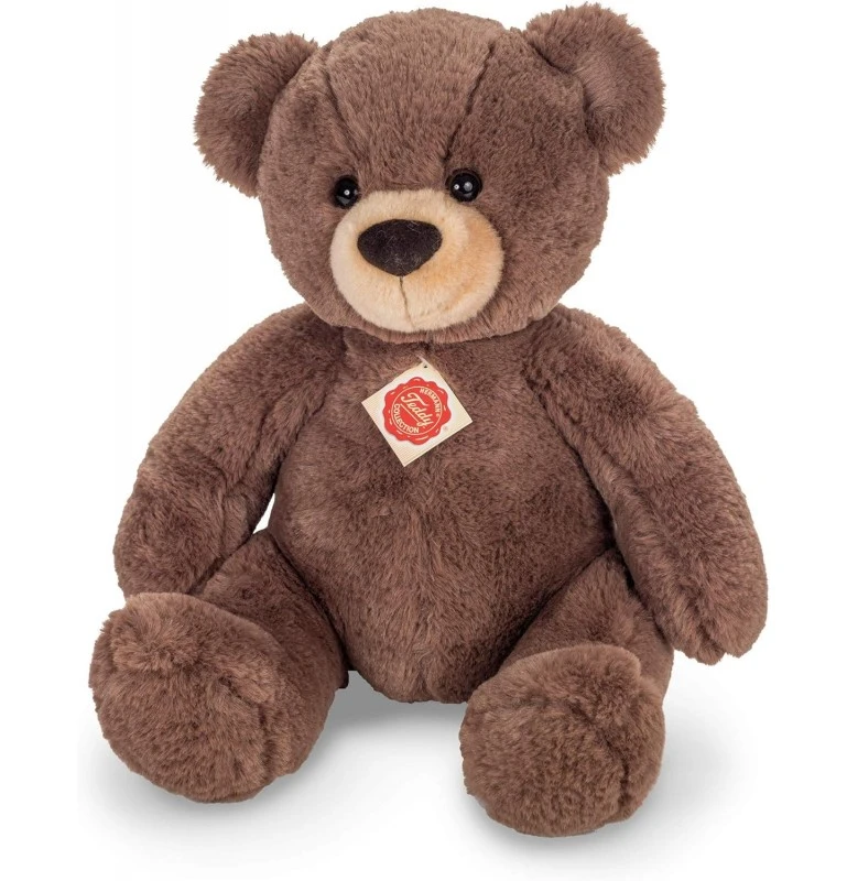 Ce joli ours en peluche de couleur chocolat Teddy Hermann apportera beaucoup de douceur, de réconfort et de sérénité à votre enfant. Un ours tendre et délicat, idéal pour de grands moments de câlins. Le nez mignon, le sourire amical et les yeux sombres donnent au nounours une expression particulièrement confiante. L’ours doux et câlin est fait de peluche de haute qualité et rempli de ouate de polyester moelleuse.