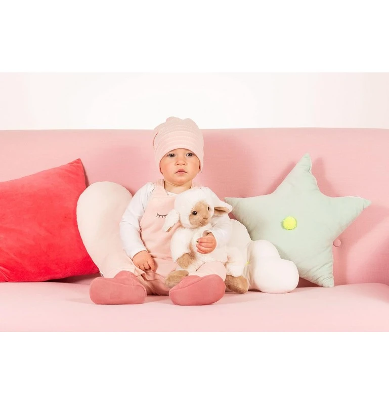 La peluche agneau Frido fait partie de la gamme tendance Herzekind spécialement développée par Teddy Hermann pour les tout-petits. La peluche est très mignonne et douce avec de petits détails comme des oreilles décollées et de jolis yeux en bouton, mais aussi son sourire enchanteur qui inspire confiance à chaque enfant. Frido est en peluche extra moelleuse et est un grand ami dès la naissance. Frido peut être utilisé comme aide au sommeil ou comme ami câlin.