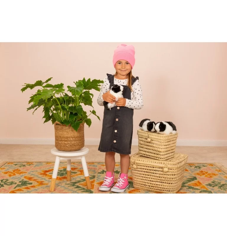 La peluche cochon d’Inde noir et blanc de la marque Teddy Hermann est très réaliste et est particulièrement appréciée par enfants. En raison de la peluche douce et du rembourrage doux, le cochon d’Inde est parfait pour câliner mais aussi pour le jeu imaginatif. Sa jolie petite tête avec ses oreilles douces et câlines gagne le cœur de chaque enfant.