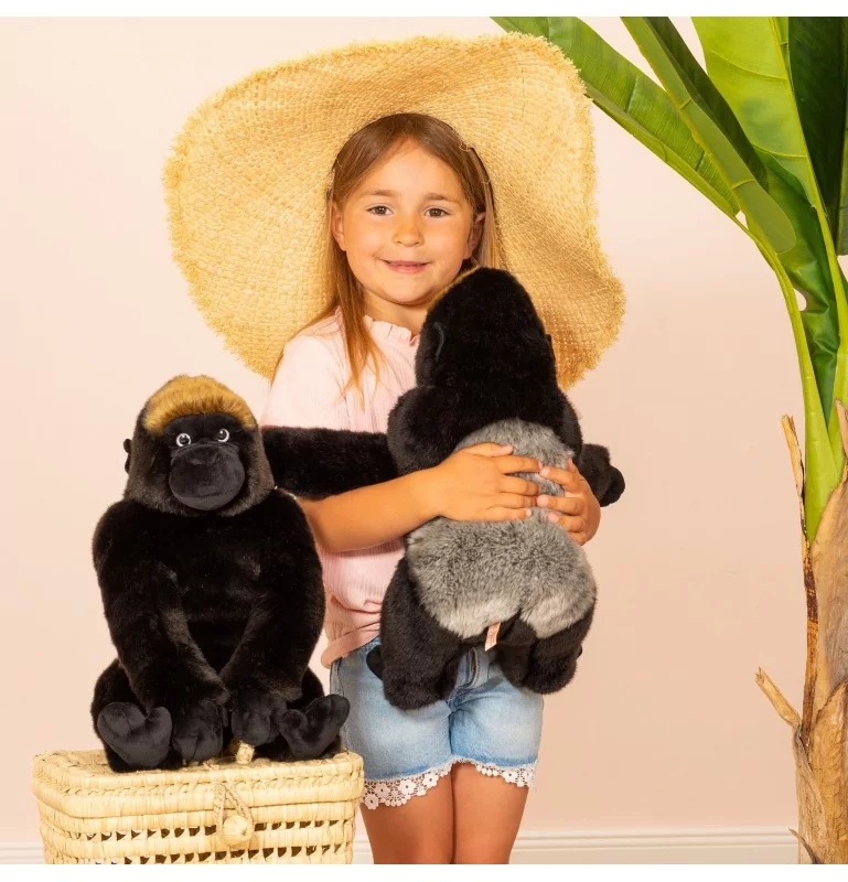 La peluche gorille de montagne de la collection Hermann Teddy a bien fière allure et est reproduction réaliste de l’impressionnant primate. Le gorille de montagne, présent dans la région des Grands Lacs Africains, est en danger d’extinction. Cette peluche de haute qualité conquiert le cœur des enfants et constitue un excellent cadeau pour les petits naturalistes. Sa douce fourrure noire invite aux câlins. Son rembourrage moelleux, composé à 100 % de PET recyclé, en fait également un jouet durable.