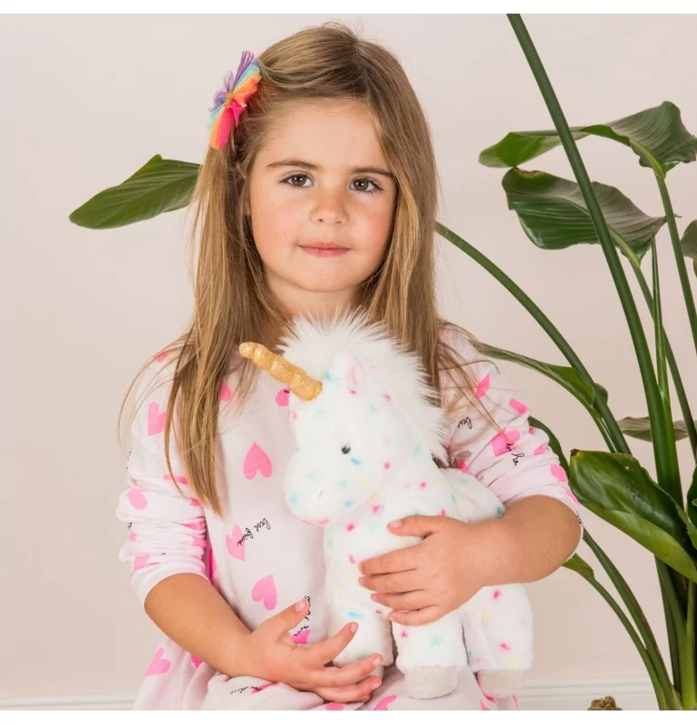 La peluche licorne Stardust fait partie de la collection Herzekind de Teddy-Hermann, une collection conçue et testée pour les tout-petits. Elle est totalement branchée avec sa couleur confetti. En peluche de haute qualité avec un rembourrage doux et câlin, elle est idéale pour le jeu mais également pour les câlins! De plus, la peluche licorne est un fantastique accroche-regard dans la chambre des enfants.