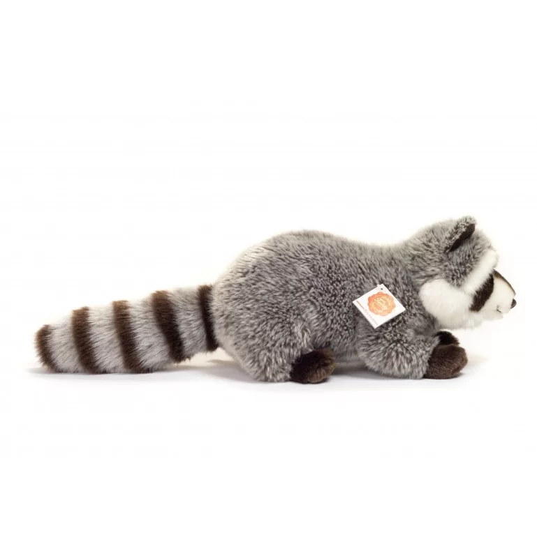La peluche raton laveur de la Collection Hermann Teddy est un excellent compagnon de jeu pour tous les fans de forêt et de prairie. Ce mignon petit animal tout doux avec sa longue queue pelucheuse est conçu de manière très réaliste et rembourré de coton super doux fabriqué à partir de matériaux 100 % recyclés. Il saura conquérir à coup sur le cœur de votre enfant.