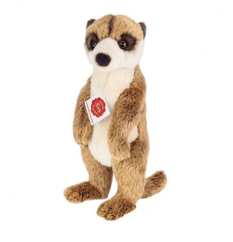 La peluche suricate de la marque Teddy Hermann est très ressemblante à l’original. Mignonne de toute douce, elle est aux aguets pour de nouvelles aventures ou bien pour donner et recevoir les plus beaux câlins. Sa longue queue, ses beaux yeux en bouton et sa douce fourrure brune donnent à la peluche son charme unique. Le suricate est fabriqué en peluche de haute qualité et rempli d’une douce ouate de polyester.