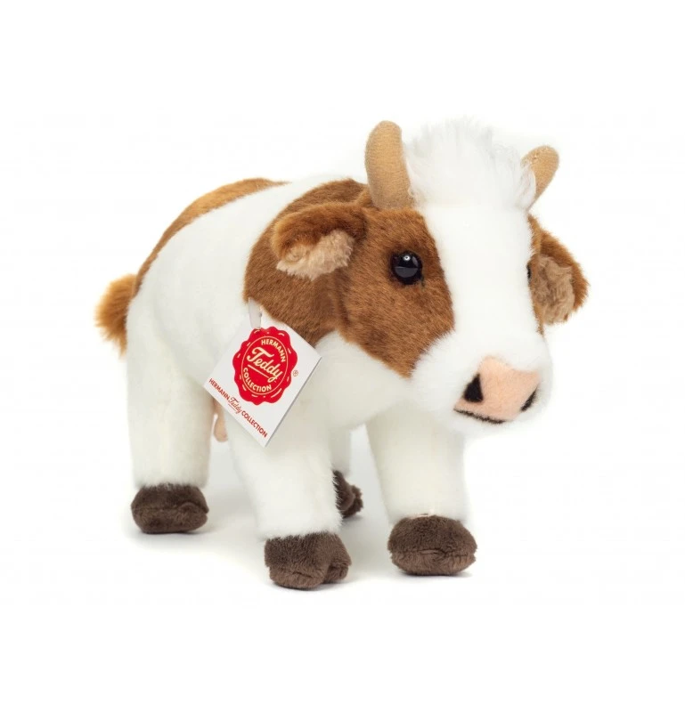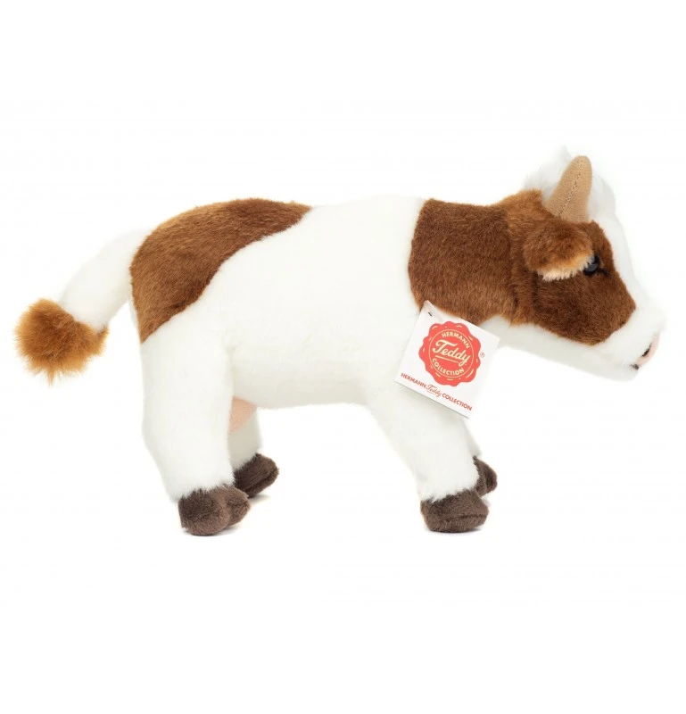 La peluche vache brune et blanche de la collection Teddy Hermann est totalement adorable. Ses yeux tendres, ses petites oreilles douces, son museau rose, ses petites cornes, sa queue touffue et sa fourrure douce et bien dessinée lui donnent un aspect réaliste. Avec sa fourrure particulièrement moelleuse, elle invite aux câlins et apporte également du réconfort. La peluche constitue un cadeau parfait pour les enfants mais également pour tous les amateurs des animaux de la ferme.