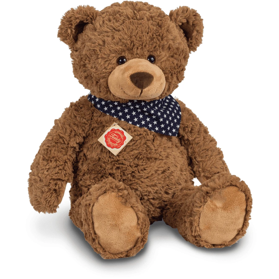 L’ourson de couleur brune de la collection de peluches Hermann Teddy est fourni avec un châle décoré d’étoiles. L’ourson est en peluche de haute qualité doublée d’ouate de polyester. La commission allemande de contrôle des jouets a distingué l’ourson par la mention bien lors des tests effectués. Dimensions : 48 cm